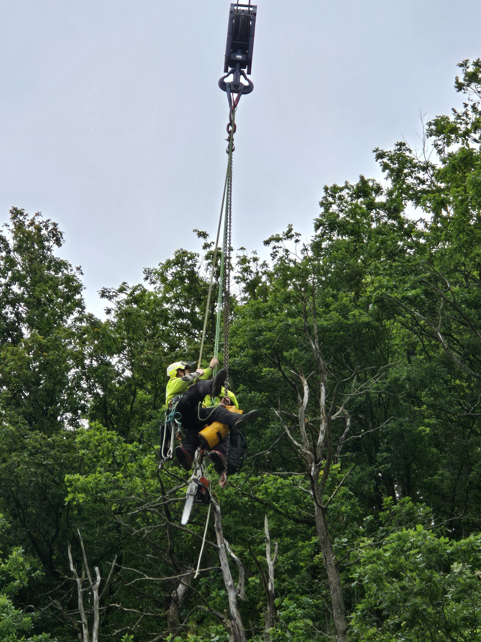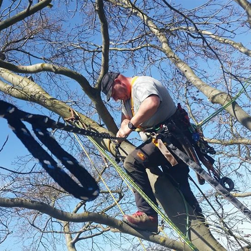 Unsere Mitarbeiter sind ausgebildete Baumkletterer mit SKT A-, B- und C-Kletterschein. Regelmäßige Unterweisungen und Rettungsübungen gewährleisten ein hohes Maß an Sicherheit und Professionalität.